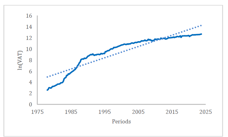 Moreno J, Mata L, and Beltrán JH (2025). The effect of legal entropy on value-added tax in Mexico, 1978–2023. International Journal of Advanced and Applied Sciences, 12(10): 81-87