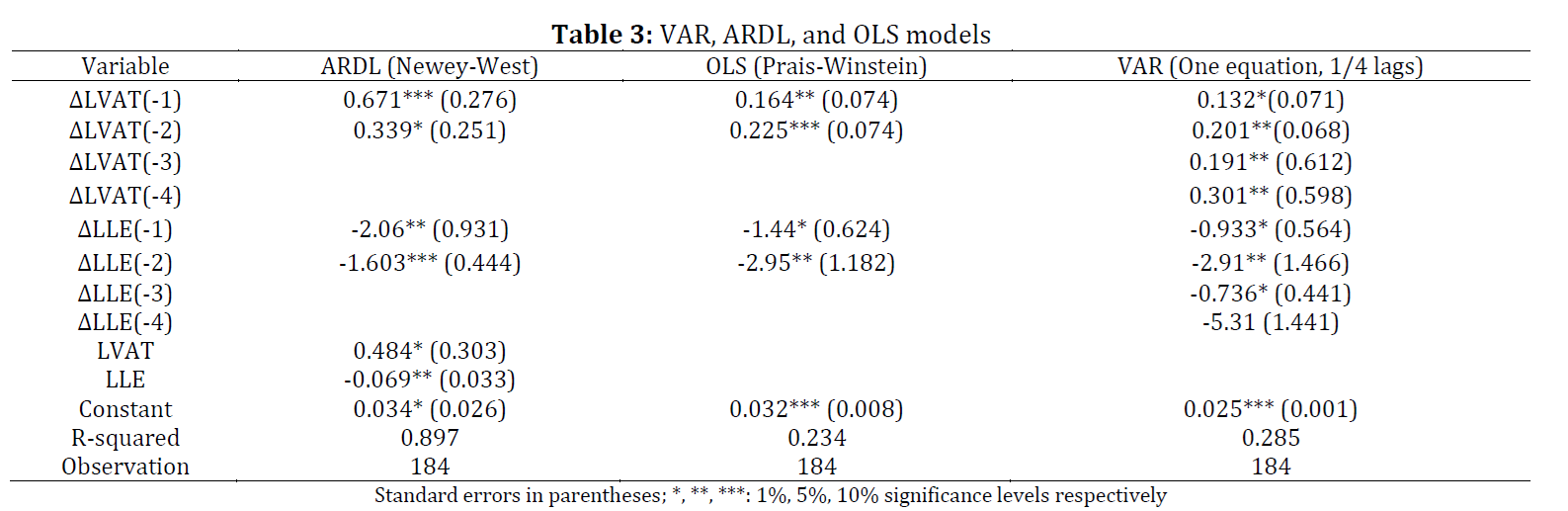 Legal entropy, Value-added tax, Granger causality, ARDL model, Cointegration