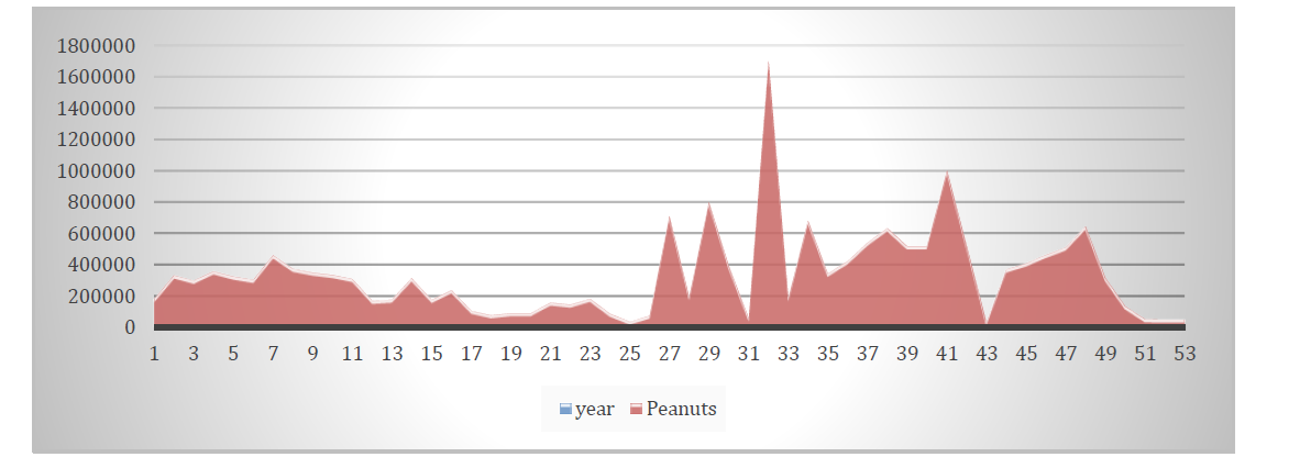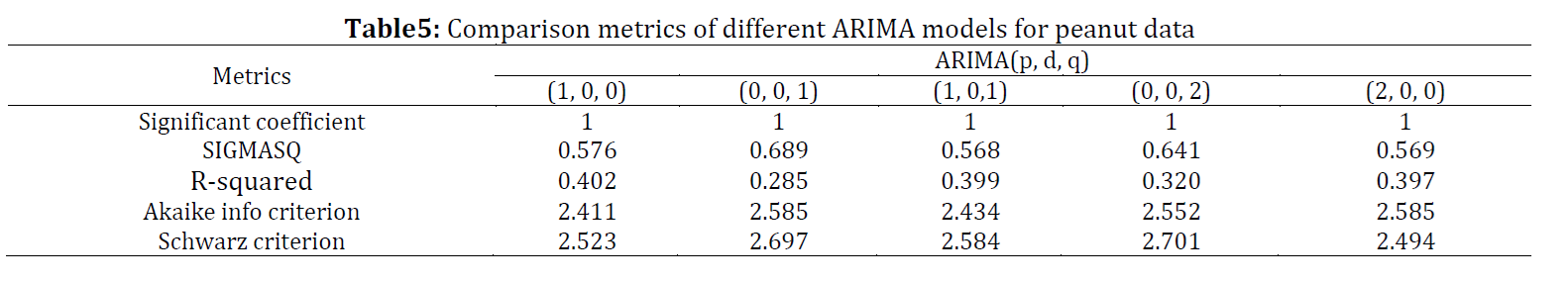 This study explores the use of the autoregressive integrated moving average (ARIMA) data-driven modeling approach for forecasting peanut yields in Sudan. Two tests were conducted: one using the original dataset and another using accumulated data. The main objective was to improve forecasting accuracy by applying a method that incorporates accumulated data for future predictions. The results, based on a comparison of the two tests, indicate that the proposed approach enhances prediction clarity. Model identification showed an increase in the coefficient of determination, a decrease in the Bayesian information criterion (BIC), and a reduction in the mean absolute error. These outcomes suggest that the proposed method may provide more accurate forecasts and could be useful for forecasting in various fields.