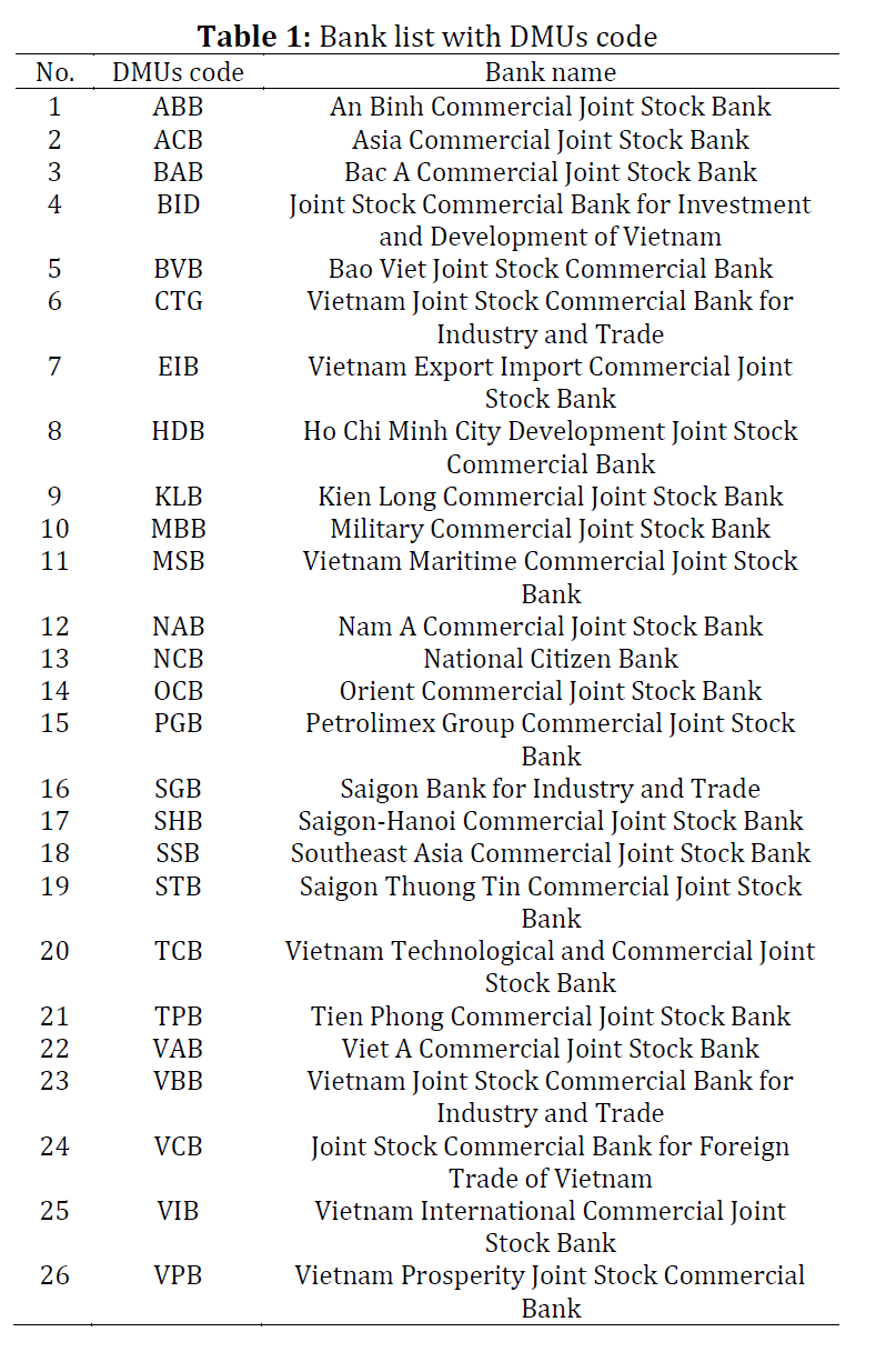 - Minh NK, Long GT, and Hung NV (2013). Efficiency and super-efficiency of commercial banks in Vietnam: Performances and determinants. Asia-Pacific Journal of Operational Research, 30(1): 1250047. https://doi.org/10.1142/S0217595912500479