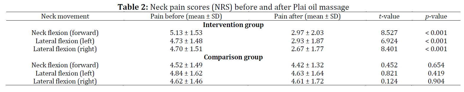 Efficacy of Plai oil massage for the management of neck and shoulder pain: A traditional Thai herbal approach