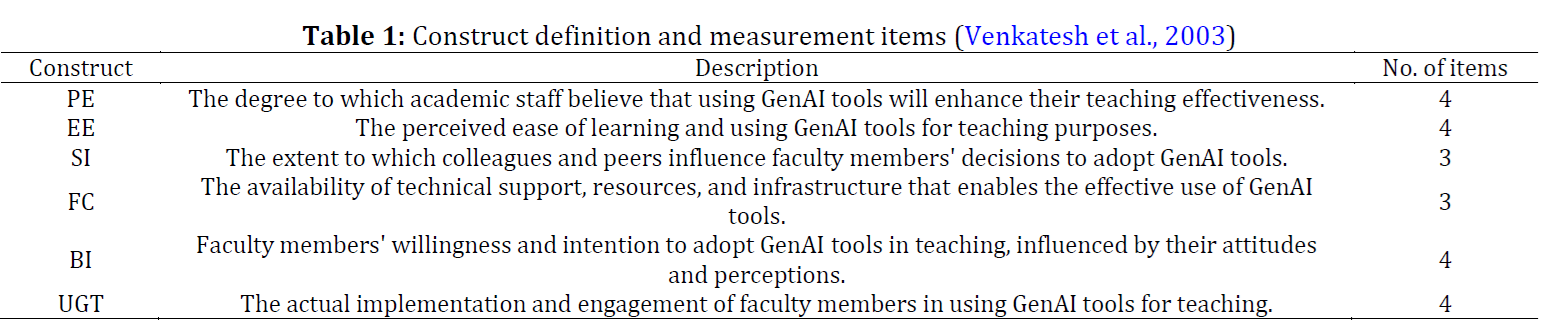 Generative AI, Technology adoption, Higher education, UTAUT model, Faculty behavior