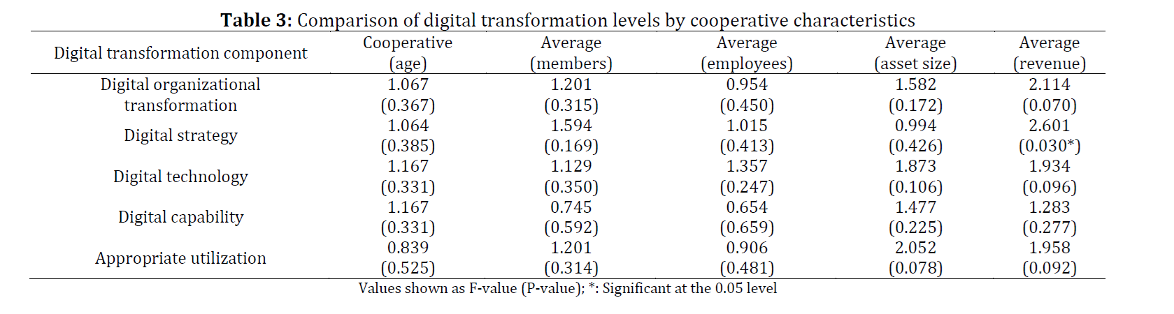 Digital transformation, Savings cooperatives, Digital strategy, Thailand, ANOVA