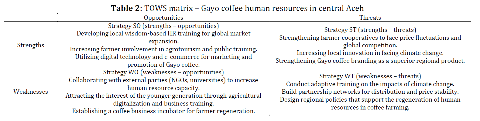 Strategic model for human resource development based on local wisdom in organic Gayo coffee cultivation in Central Aceh District, Indonesia