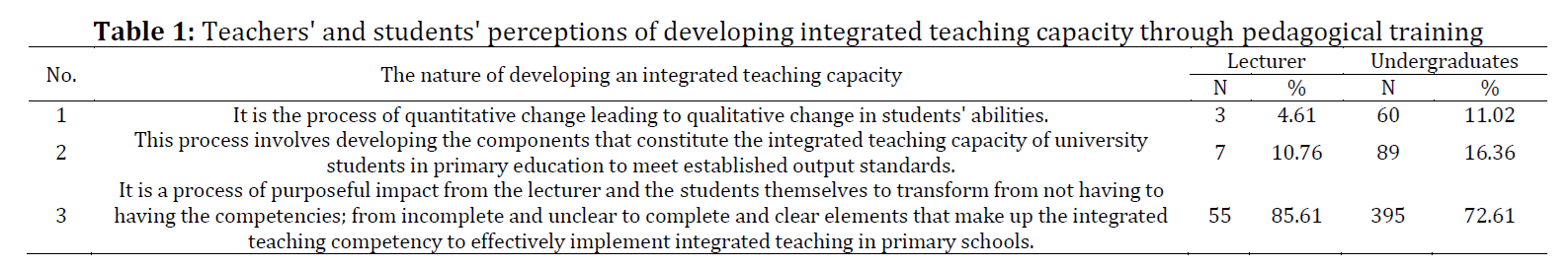 Nguyen HTT, Le THC, Phan TT, Tran CD, and Le TTX (2026). Developing integrated teaching skills in primary education: Insights from pedagogical training. International Journal of Advanced and Applied Sciences, 13(1): 45-52