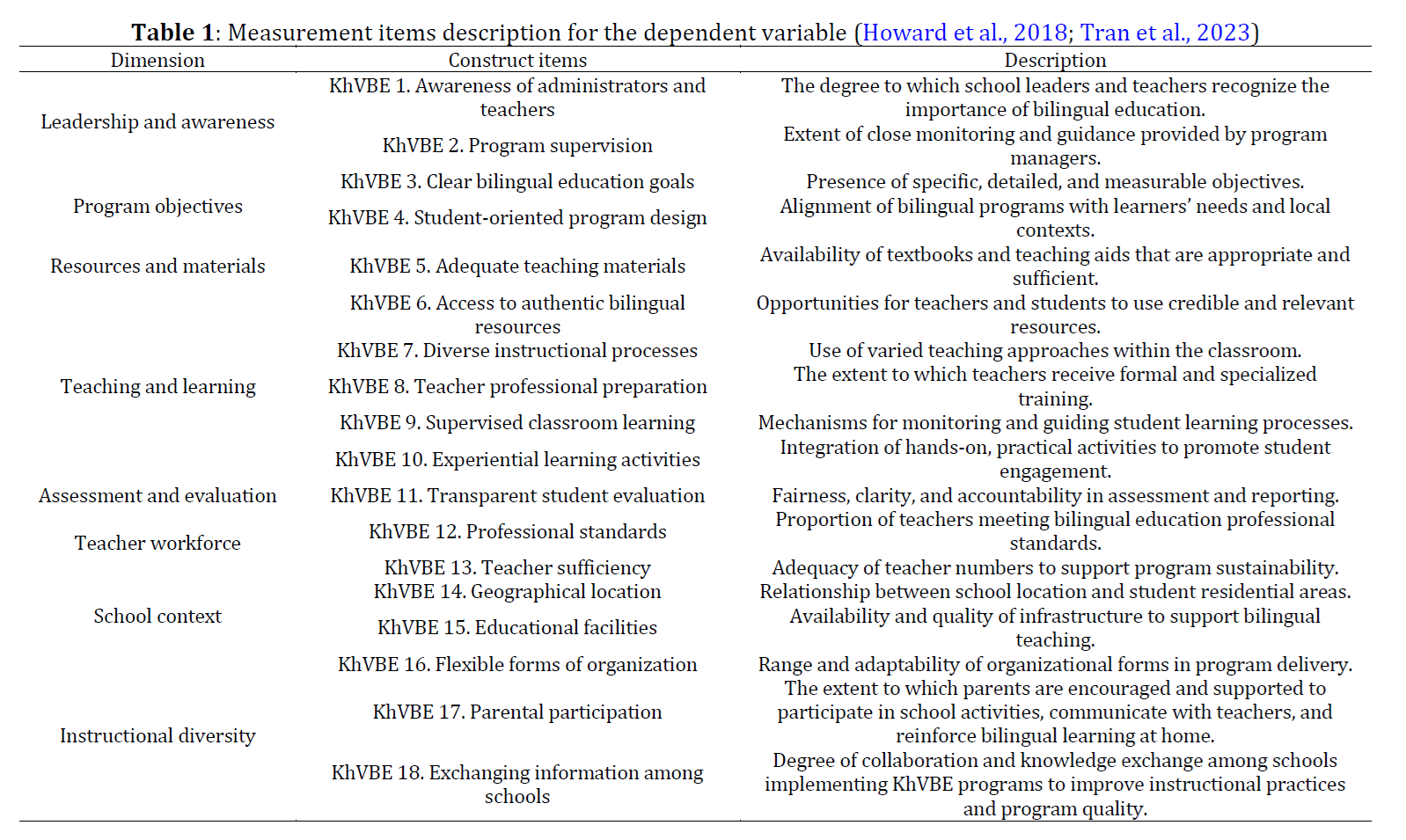 Tran TY, Vuong H, Pham TV, Dam THD, Ha TH, and Hoang TAV (2023). A model of mother tongue-based bilingual education in Vietnam: Achievements and lessons learnt. Journal for Educators, Teachers and Trainers, 14(6): 71-85.