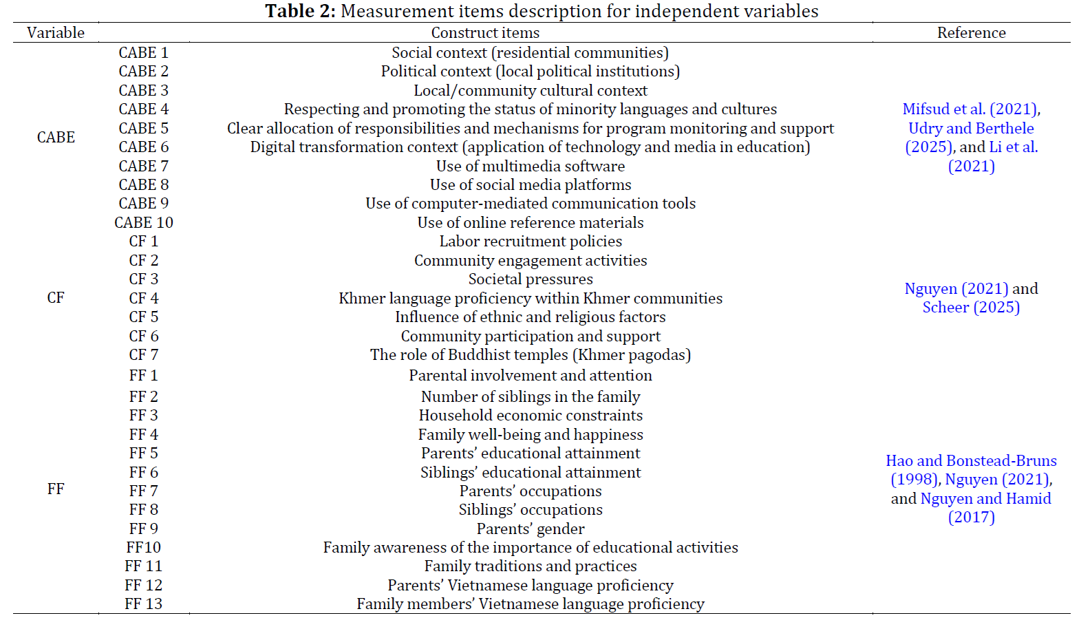 Duong MQ, Nguyen VTT, Nguyen VT, and Bach TND (2026). Bilingual education for primary students in Vietnam’s Mekong Delta: Roles of contextual, community, and family factors. International Journal of Advanced and Applied Sciences, 13(2): 70-80
