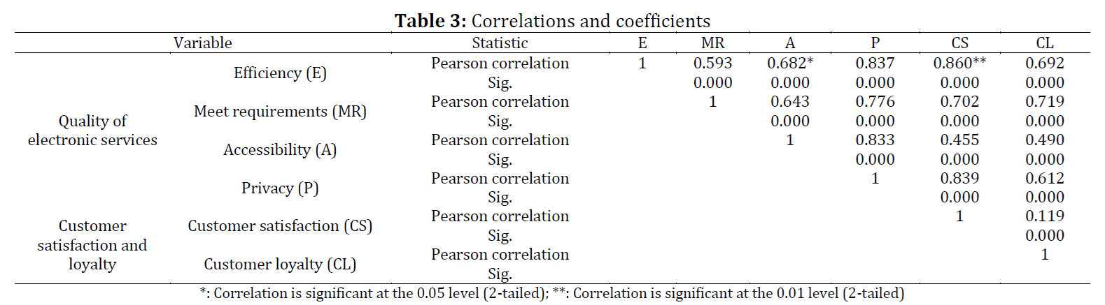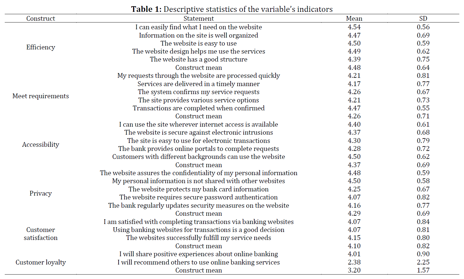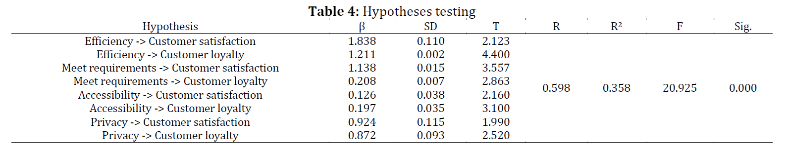 Electronic service quality, Customer satisfaction, Customer loyalty, System accessibility, Privacy