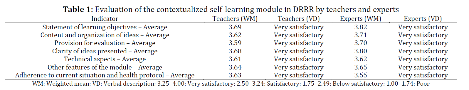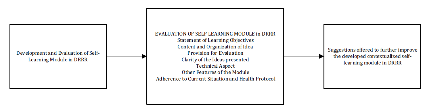 Volume 13, Issue 2 (February 2026), Pages: 240-245 ---------------------------------------------- Original Research Paper Development and evaluation of a contextualized self-learning module in disaster readiness and risk reductionAuthor(s): Affiliation(s): Laboratory High School Department, Nueva Ecija University of Science and Technology, Cabanatuan, Philippines Full text* Corresponding Author. Digital Object Identifier (DOI)https://doi.org/10.21833/ijaas.2026.02.025 AbstractDeveloping effective learning modules requires substantial effort from teachers to improve students’ understanding. This study aimed to develop a contextualized self-learning module (SLM) in Disaster Readiness and Risk Reduction (DRRR) for Grade 11 STEM and GAS students. The module was designed to support independent learning, enhance higher-order thinking skills, and connect lessons to real-life situations, particularly disasters experienced in the country. The researcher, a DRRR teacher, developed the module in alignment with the Most Essential Learning Competencies (MELCs) and followed the standard SLM format prescribed by the Department of Education. The development was based on the premise that contextualized self-learning promotes meaningful learning by linking new concepts to students’ lived experiences and the nation’s disaster history. The SLM includes structured sections such as learning objectives, prior knowledge assessment, content discussion, enrichment activities, assessment tasks, and an answer key. Evaluation results showed that teachers rated the module highest in the statement of learning objectives (WM = 3.69) and lowest in provision for evaluation (WM = 3.59), both interpreted as very satisfactory. Similarly, experts gave the highest rating to the statement of learning objectives (WM = 3.82) and the lowest to adherence to current situations and health protocols (WM = 3.55), which were also interpreted as very satisfactory. Overall, the findings indicate that the developed contextualized SLM met acceptable quality standards for instructional materials. Feedback and recommendations from teachers and experts were incorporated to further improve the module’s relevance, effectiveness, and academic value. © 2026 The Authors. Published by IASE. This is an KeywordsContextualized learning, Self-learning module, Disaster readiness, Independent learning, Instructional quality Article historyReceived 24 August 2025, Received in revised form 12 January 2026, Accepted 22 February 2026 Acknowledgment The author would like to express heartfelt gratitude to the Deans and Professors of the Graduate School Department of Phinma Araullo University and Nueva Ecija University of Science and Technology for their invaluable support throughout the course of this work. Sincere appreciation is also extended to her former institution, Sto Domingo National Trade School, where she proudly served as a science teacher for 10 years. Their encouragement and influence have played a significant role in shaping her professional journey. Compliance with ethical standards Ethical considerations: Permission to conduct the study was obtained from the Schools Division Superintendent of the Schools Division of Nueva Ecija, with the endorsement of the Thesis Adviser and the Dean of the Graduate School. Participation was voluntary, and informed consent was obtained from all respondents prior to data collection. The identities of participants were kept anonymous, and all data were treated with confidentiality and used solely for research purposes. Data collection was conducted in accordance with the health and safety protocols stipulated in DepEd Memorandum No. 034, s. 2020. Conflict of interest: The author(s) declared no potential conflicts of interest with respect to the research, authorship, and/or publication of this article.Citation:Dy GAM (2026). Development and evaluation of a contextualized self-learning module in disaster readiness and risk reduction. International Journal of Advanced and Applied Sciences, 13(2): 240-245 Figures Tables ---------------------------------------------- References (11)