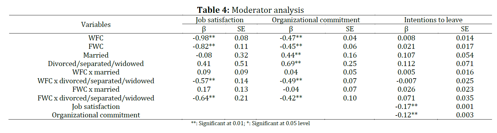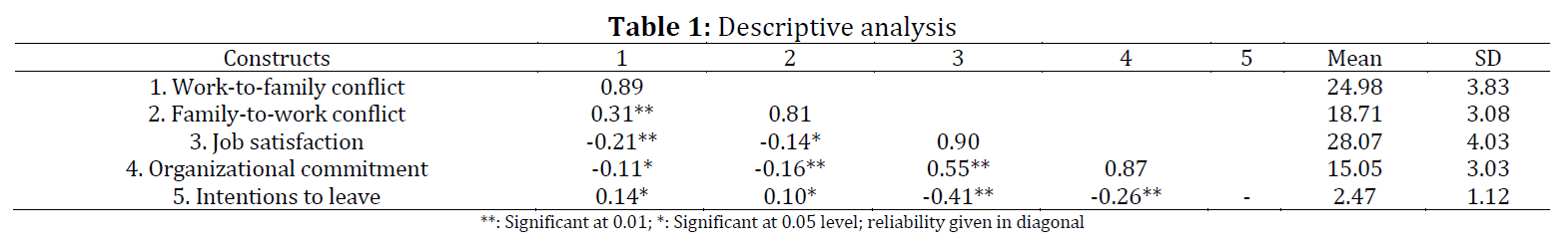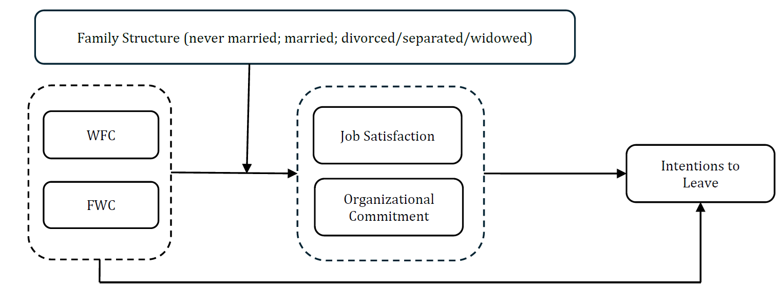 Work–family conflict, Family structure, Turnover intention, Job satisfaction, Organizational commitment